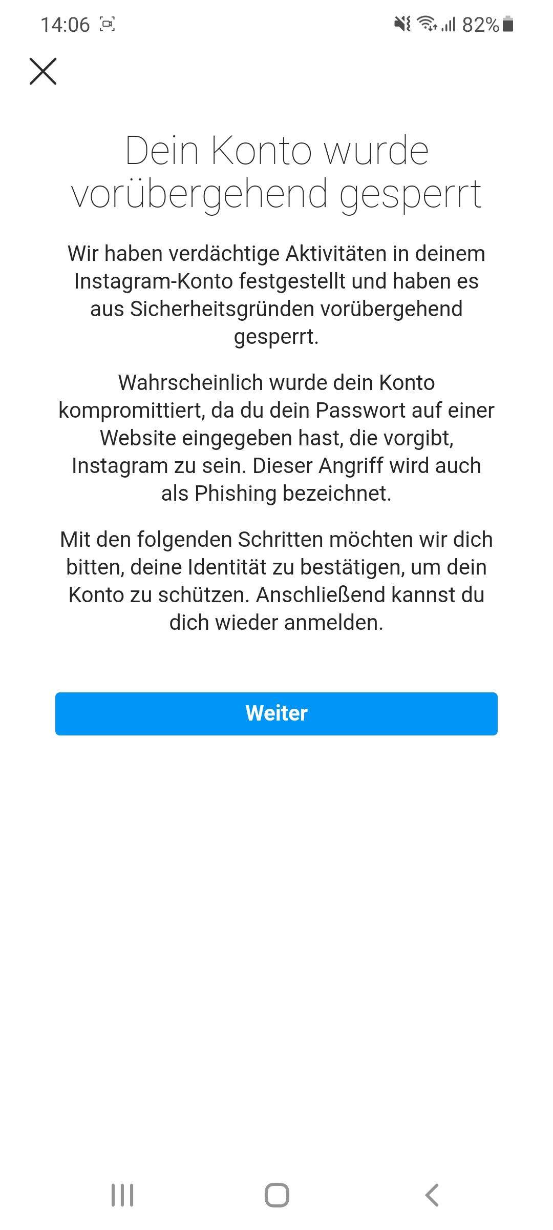 Instagram Konto gesperrt